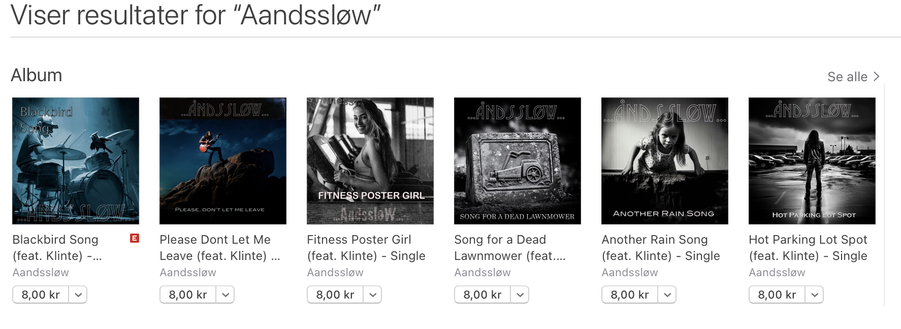 Q: Over the past month much of Aandssløw’s music has been released for streaming on Spotify, Apple Music and other platforms, as well as for single purchase on iTunes. Do you expect to become famous and make money?